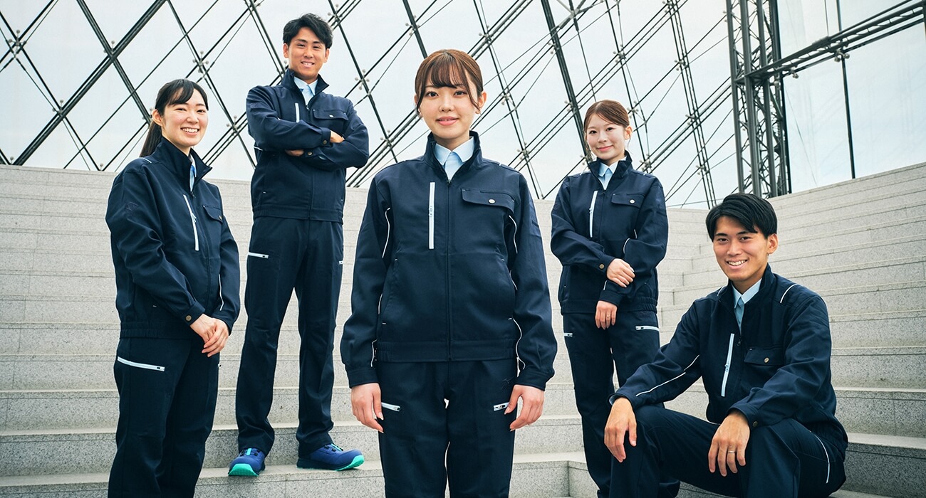 プロジェクトチームのメンバーには、建築・土木・設計といった現場で日常的にユニフォームを着用している社員に加えて、総務・人事・営業など、社外の方や学生と接する機会が多い部署のメンバーも参加しました。