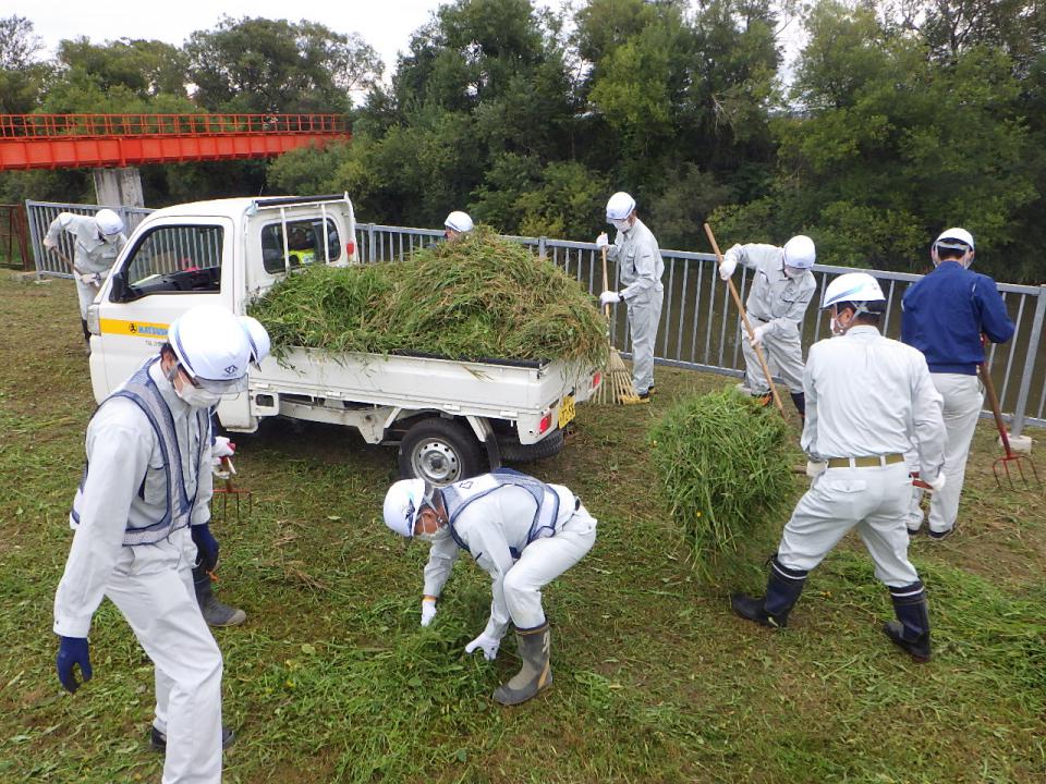 お知らせ ホーム お知らせ一覧 草刈で環境美化に貢献 CSR2021.09.13草刈で環境美化に貢献令和3年9月8日、長都揚水機場敷地内および資材ヤードの草刈りと運搬・堆積作業を、本社役職員と近隣で工事を施工している4現場から駆け付けた職員および協力会社の職員、総勢28名が参加し、施設周辺の環境美化に貢献しました。 弊社は、2014年からながぬま土地改良区管理施設の草刈りボランティアに取り組んでおり、今回で8年連続16回目になります。 緊急事態宣言下であるため、マスクの装着と密にならない作業を心掛け、生い茂った雑草の刈り払いと堆積に汗を流しました。 前へお知らせ一覧に戻る一覧に戻る次へ