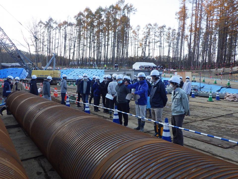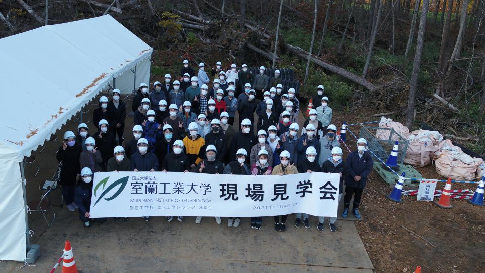 令和3年11月4日、室蘭工業大学創造工学科・土木工学トラックの3年生(65名)を北広1号橋下部作業所に招き、現場見学会を開催しました。