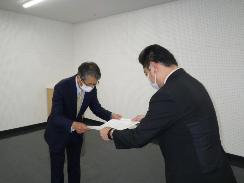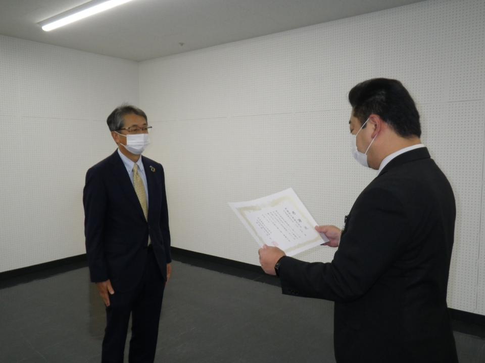 感謝状は、岩見沢市教育委員会 教育長 三角光二 様より、弊社専務取締役 中村暁彦 へ進呈いただきました。