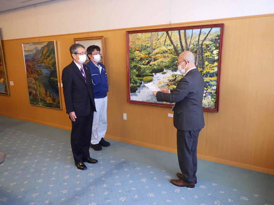 感謝状は、岩見沢市北村支所長 松永寿治 様より、弊社専務取締役 中村暁彦 へ進呈いただきました。