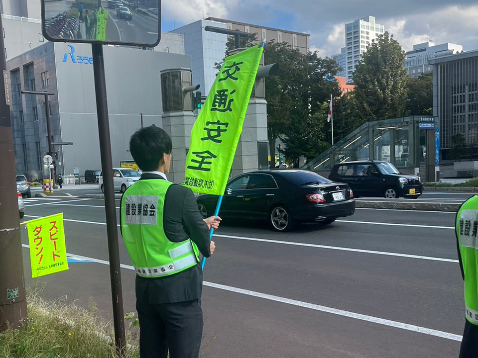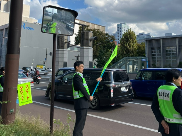 お知らせ ホーム お知らせ一覧 札幌建設業協会 秋の交通安全街頭啓発活動に参加しました CSR2023.09.28札幌建設業協会 秋の交通安全街頭啓発活動に参加しました9月27日、札幌建設業協会主催の「秋の交通安全街頭啓発活動」に当社社員3名が参加いたしました。 この活動は、建設産業による交通事故の撲滅を目的とした「建設産業交通安全全道大会」の開催に合わせ実施されたもので、札幌市内でも比較的交通量の多い北1条通りでドライバーへ交通安全の呼びかけを行いました。 当社は、誰もが安心して暮らせる街と未来をつくるため、これからも交通安全活動に積極的に取り組んでまいります。 当社の地域への取り組み 前へお知らせ一覧に戻る一覧に戻る次へ