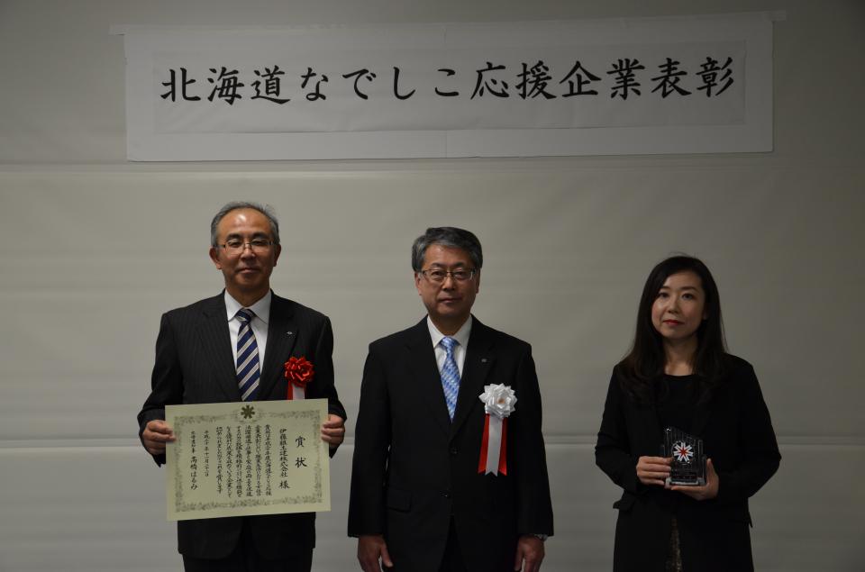 お知らせ ホーム お知らせ一覧 「北海道なでしこ応援企業表彰」を受賞しました お知らせ2018.12.19「北海道なでしこ応援企業表彰」を受賞しました平成30年11月22日、北海道なでしこ応援企業表彰を受賞しました。 この賞は、女性の職業生活における活躍や労働者の仕事と家庭の両立を支援するため、積極的に取組みを推進している企業に表彰されるものです。 表彰の評価対象は、女性の積極的な採用や管理職昇進機会の提供など、女性の職業生活継続の推進に進んで取り組んでいることが挙げられます。 前へお知らせ一覧に戻る一覧に戻る次へ