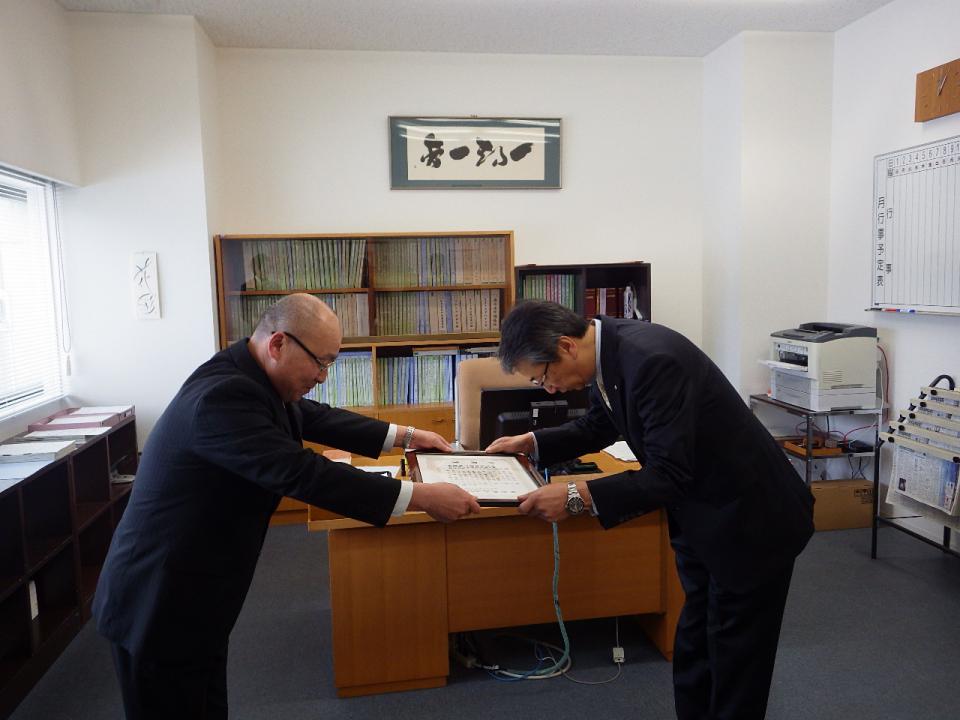 お知らせ ホーム お知らせ一覧 共和町教育委員会より感謝状を頂きました CSR2019.12.27共和町教育委員会より感謝状を頂きました令和元年12月26日、茅沼2号トンネル工事作業所において共和町教育委員会より感謝状を頂きました。 この感謝状は、河川敷にある立木の伐採により洪水時の流量の阻害除去等に貢献したことに対して贈られました。 前へお知らせ一覧に戻る一覧に戻る次へ