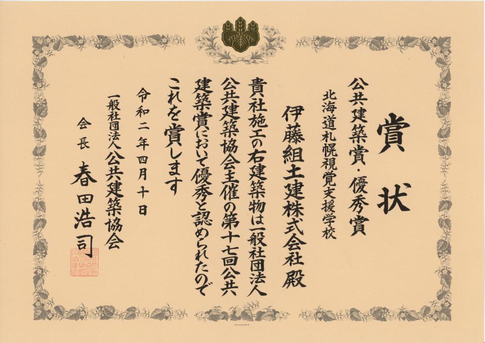 お知らせ ホーム お知らせ一覧 第17回公共建築賞「公共建築賞・優秀賞」を受賞しました 受賞2020.08.03第17回公共建築賞「公共建築賞・優秀賞」を受賞しましたこの度、当社が施工した北海道札幌視覚支援学校(平成26年竣工)が第17回公共建築賞「公共建築賞・優秀賞」を受賞しました。 受賞歴一覧へ前へお知らせ一覧に戻る一覧に戻る次へ