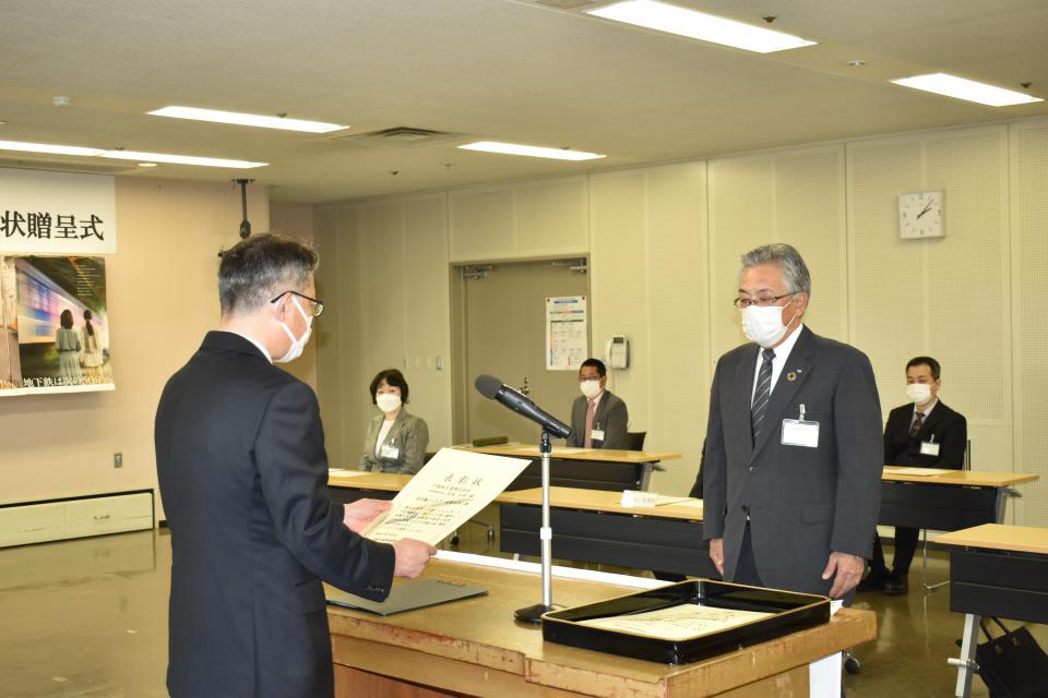 令和4年7月4日に開催された表彰式では、札幌市交通局様より、弊社代表取締役社長 大谷正則へ表彰状を授与いただきました。