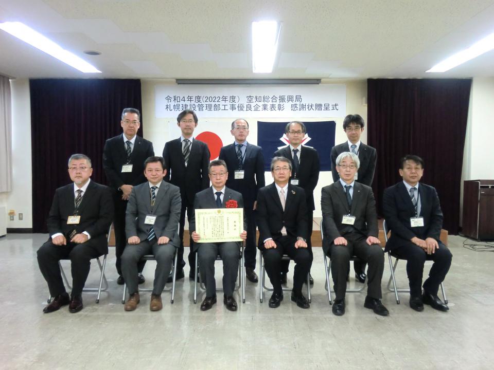 12月20日、令和3年度中に完成した北海道空知総合振興局札幌建設管理部発注の工事の施工において、弊社が特に優良な成果をあげ、地域の発展などに寄与したとして、工事優良企業表彰を受賞しました。