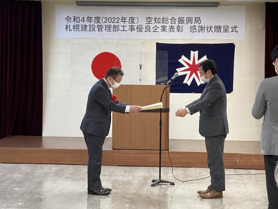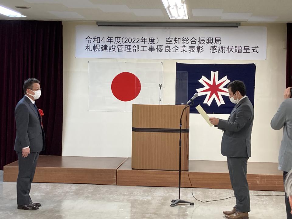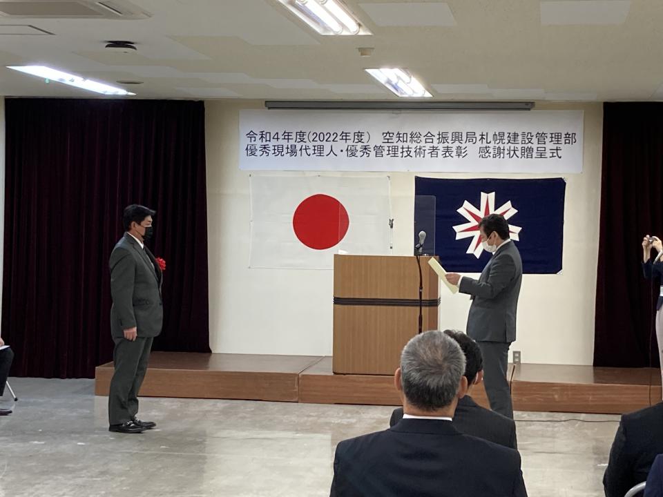 令和4年度 札幌建設管理部工事優良企業表彰・優秀現場代理人表彰を受賞しました