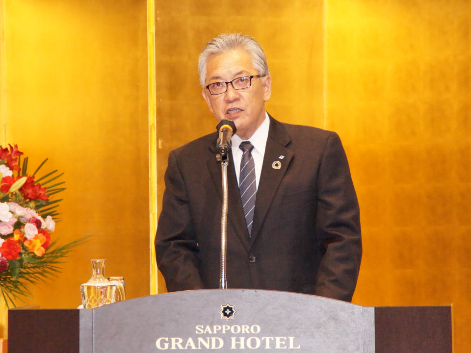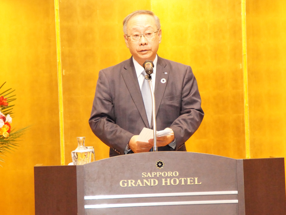 式典は札幌交響楽団 金管アンサンブルによるファンファーレで華やかに開幕。会場に祝賀ムードが広がるなか、伊藤組土建株式会社 代表取締役会長 玉木勝美、株式会社 伊藤組 代表取締役会長 高井 修がグループ各社を代表し挨拶。伊藤組土建株式会社 代表取締役社長 大谷正則が記念演述を行いました。