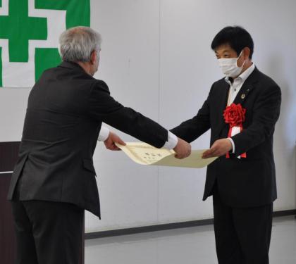 令和4年7月6日に札幌第一合同庁舎で開催された表彰伝達式では、北海道労働局長 友藤智朗 様より、本工事所長 原田英一に表彰状が伝達されました。