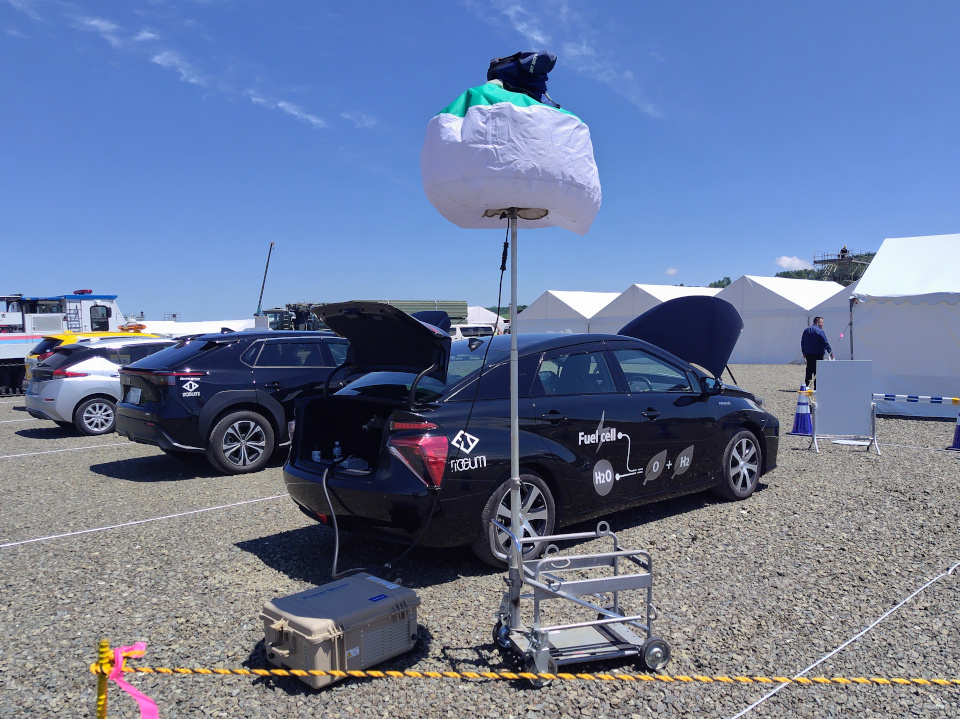 6月1日に北見市で行われた「令和6年度 常呂川・網走川連合総合水防演習」にて、災害発生時に活躍する車両として当社所有の水素自動車「MIRAI」と電気自動車「bZ4X」を展示しました。