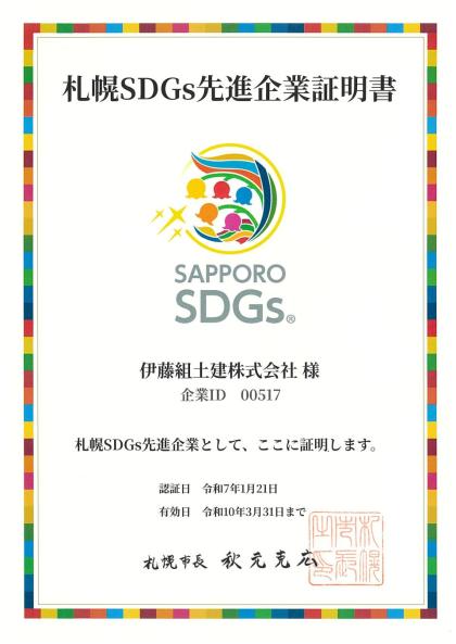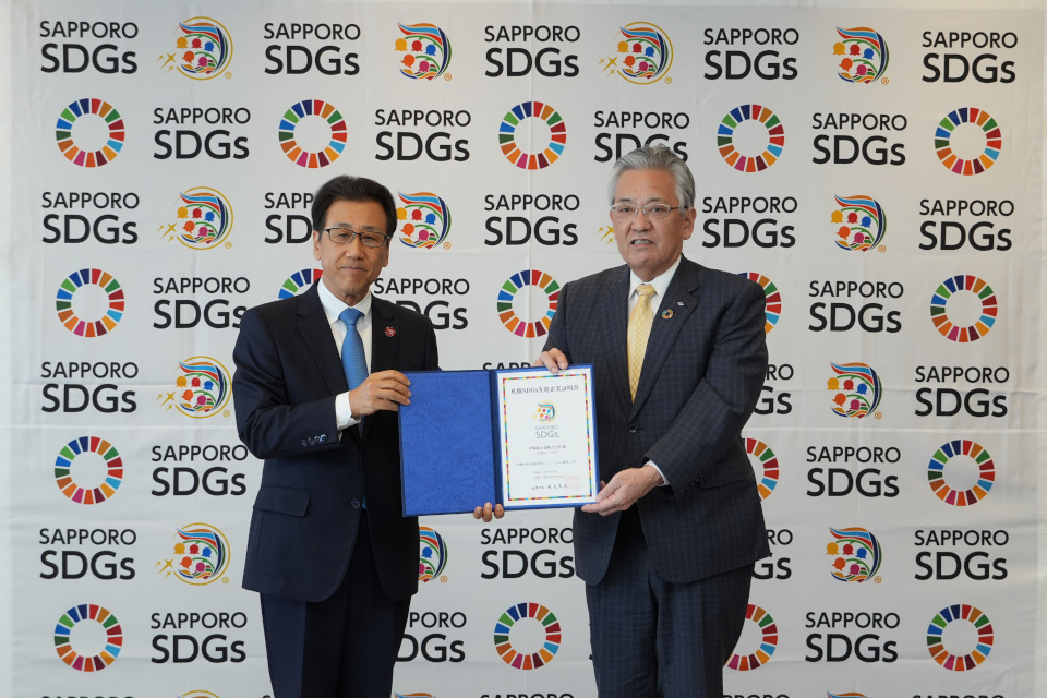 札幌SDGs先進企業認証制度は、SDGsをビジネスの観点から考え、本業の一環として、社会課題の解決と企業成長の同時実現に取り組む企業を創出・支援することを目的に、第三者の審査を踏まえ、基準を満たした企業を認証する制度です。札幌市役所で行われた認証式には、当社代表取締役社長 大谷正則が出席し、秋元克広市長から証明書を手渡されました。