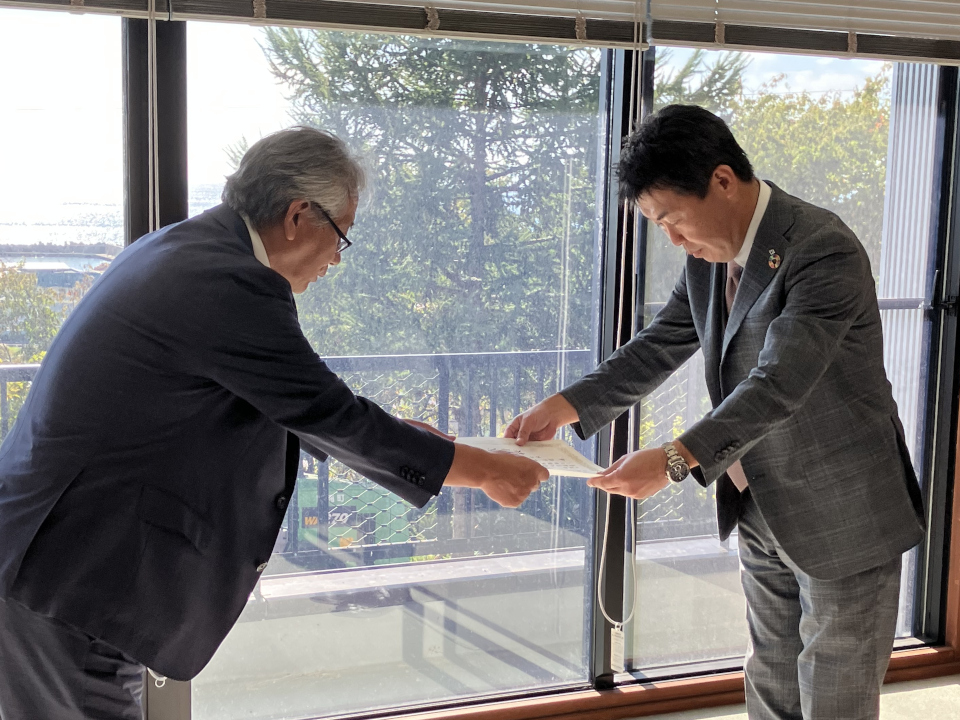 道道大岸礼文停車場線交付金(美の岬トンネル)工事における地域社会貢献活動の一環として行った、豊浦町噴火湾展望公園の老朽化した遊具の撤去に対し、公園の環境及び利用者の安全対策に貢献したとして、当社を含む伊藤・泰進・幌村特定建設工事共同企業体に感謝状が授与されました。
