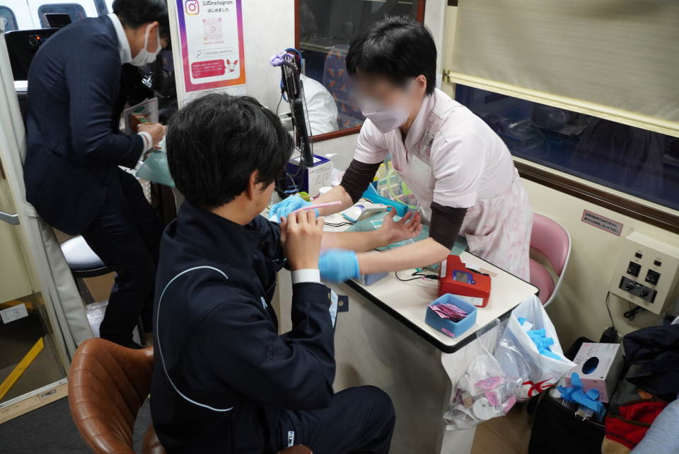 お知らせ ホーム お知らせ一覧 本社にて献血を実施しました CSR2026.01.06本社にて献血を実施しました2025年12月23日、本社にて献血を実施しました。 当社では、北海道赤十字血液センター様と協力し、社内での献血を長年にわたって実施しており、本年度2回目となる今回の献血は27名の社員が参加しました。 輸血用血液不足解消の一助となれるよう、今後も継続的に実施してまいります。 前へお知らせ一覧に戻る一覧に戻る次へ