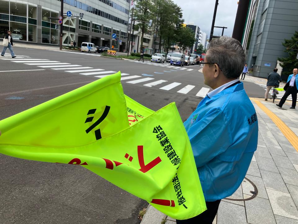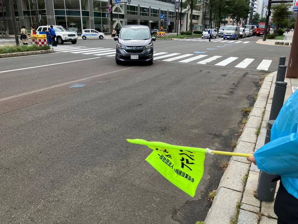 お知らせ ホーム お知らせ一覧 札幌建設業協会 秋の交通安全街頭啓発活動に参加しました CSR2025.09.26札幌建設業協会 秋の交通安全街頭啓発活動に参加しました9月25日、札幌建設業協会主催の「秋の交通安全街頭啓発活動」に当社社員2名が参加いたしました。 この活動は、建設産業による交通事故の撲滅を目的とした「建設産業交通安全全道大会」の開催に合わせ実施されたもので、札幌市内でも比較的交通量の多い北1条通りの6丁目・7丁目でドライバーへ交通安全の呼びかけを行いました。 当社は、誰もが安心して暮らせる街と未来をつくるため、これからも交通安全活動に積極的に取り組んでまいります。 前へお知らせ一覧に戻る一覧に戻る次へ