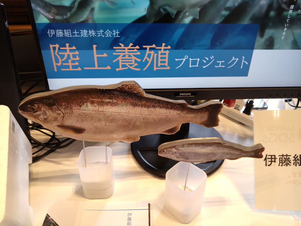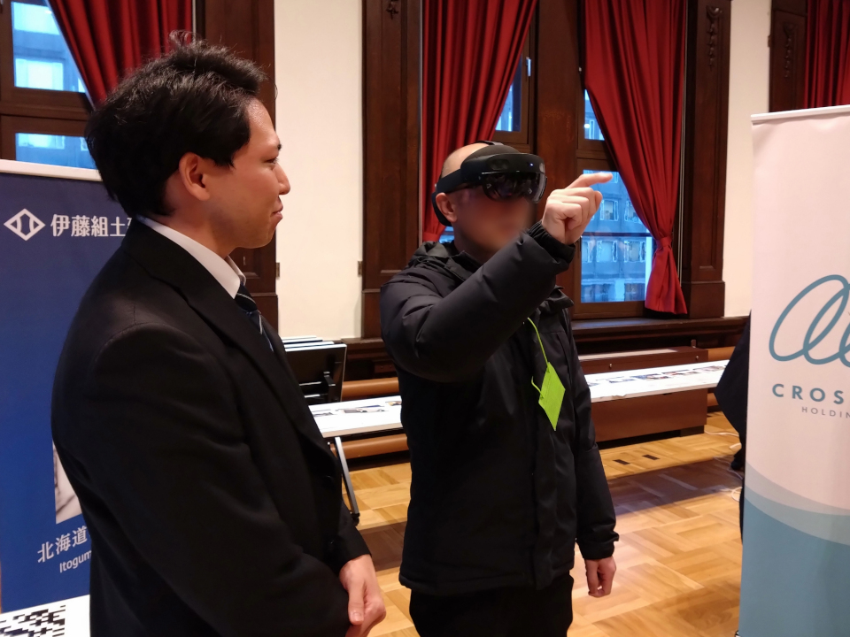 当社ブースでは、新規事業として取り組んでいるヒメマスの陸上養殖事業をご紹介し、自然環境や生態環境に配慮した閉鎖循環式陸上養殖のシステムによる持続可能な未来への挑戦についてお伝えしました。また、建設DXの取り組みとして推進しているMR(複合現実)技術の体験コーナーも設け、設計データと現実空間を重ね合わせることで施工イメージを直感的に共有できる先進的な現場活用事例をご体感いただきました。