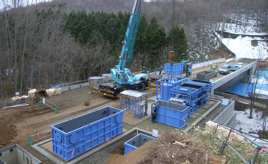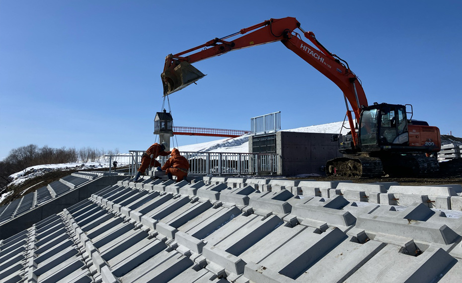 重機やクレーンを用いて、資材や構造物を安全かつ効率的に運搬・設置する作業です。