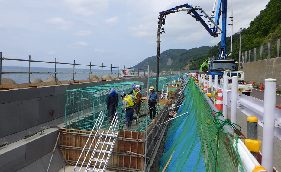 橋梁、擁壁、カルバートなど、道路を支える構造物を築く工程です。