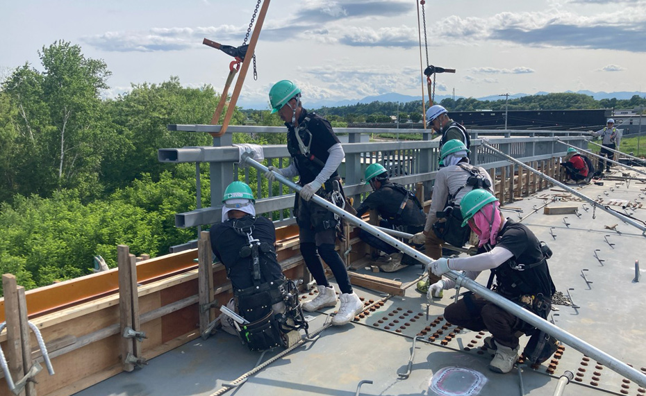 鋼構造物・金属工事は、建築の安全性と意匠性を高水準で調和させる仕事。正確に組み上げられた骨格があるからこそ、建物は長く人々を守り続けられるのです。