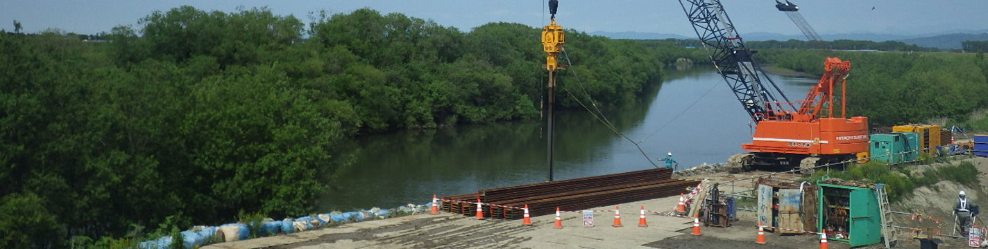 橋台や橋脚の基礎を施工する際、周囲の地盤が崩れないように支える工事です。鋼矢板や親杭横矢板などを設置して土圧を受け止め、掘削作業を安全に行える環境を整えます。現場の安全と品質の出発点となる重要な工程です。