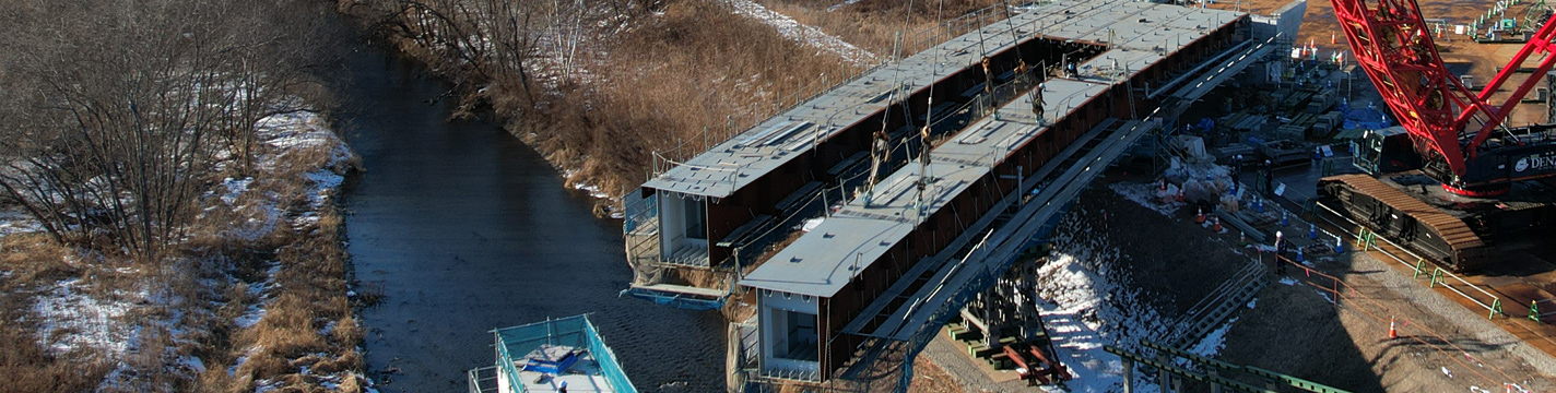 橋梁工事(鋼橋)の現場は、構造美と精密さが融合するスケールの大きなプロジェクトです。交通や物流の生命線となる橋を支えるために、地盤の安定から鋼材の組立、仕上げに至るまで、数多くの工程が綿密に積み重ねられます。鋼橋は、軽量かつ高強度という特性を活かし、長スパンや大荷重にも対応できる構造として広く採用されています。現場では、高い精度が求められる組立や溶接、架設作業を通じて、安全と耐久性、そして美しいシルエットを実現していきます。