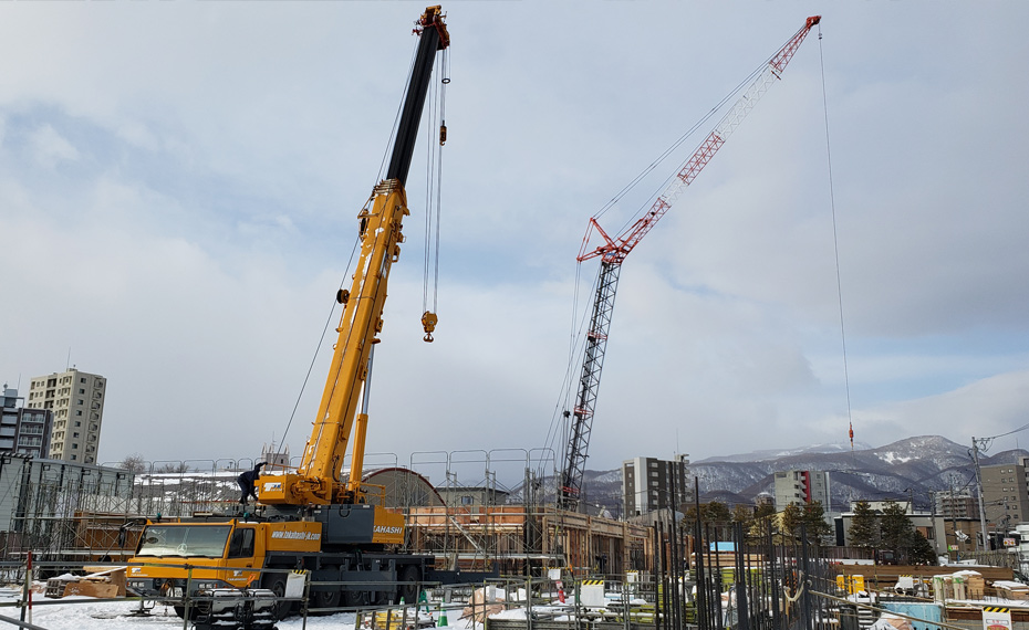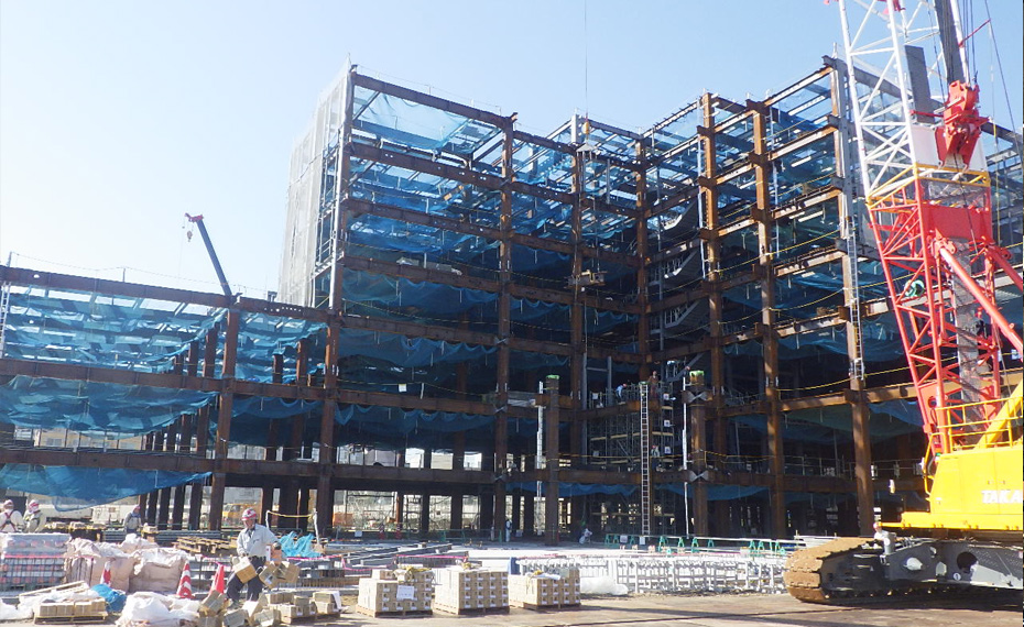 建物の形状や工程に合わせて足場を計画・施工し、工事進捗に応じて組替えや解体を行います。 - 鉄骨・大型部材の揚重作業