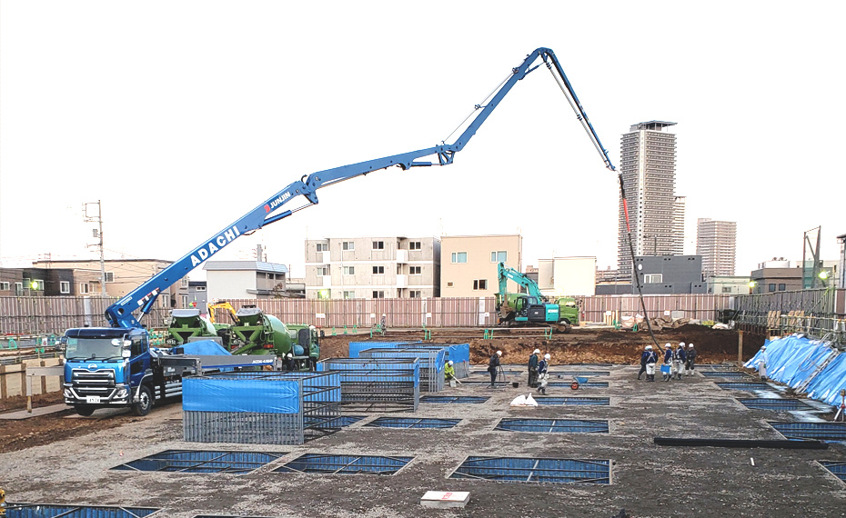 建物の荷重を確実に地盤へ伝える、基礎の要となる工事です。