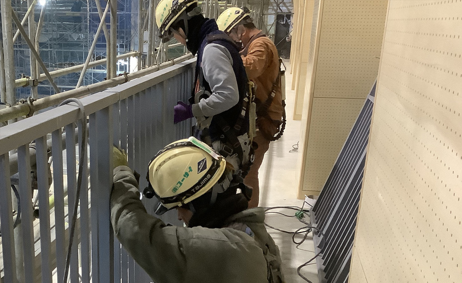墜落防止のための親綱や手すりなど、安全設備を整備します。