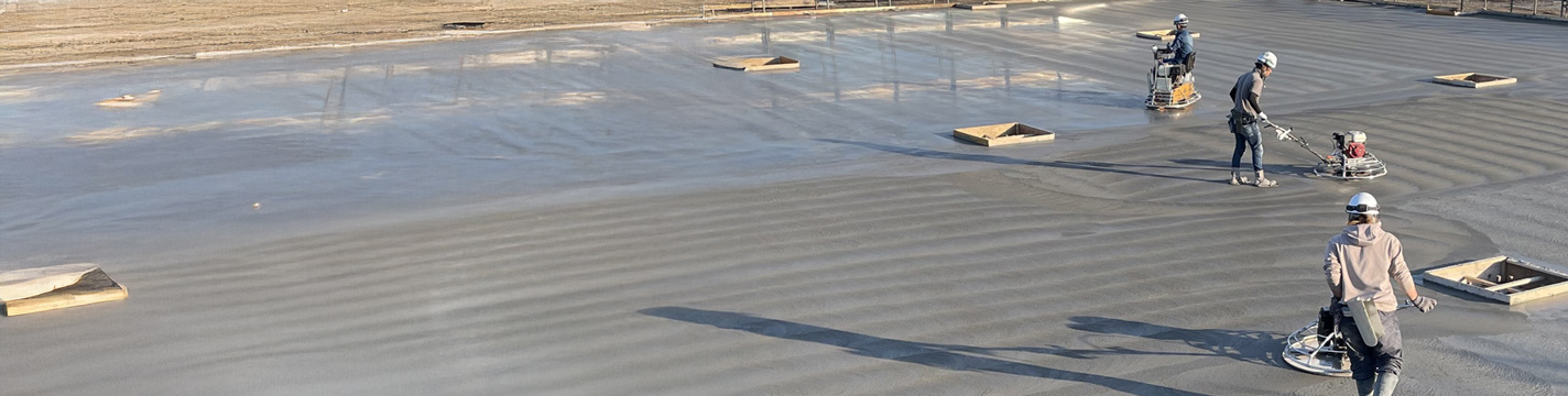 練り上げたコンクリートを型枠に流し込み、コテや振動機などで密実に仕上げる工程。時間との勝負でもあり、チームワークが試されます。 - 養生・仕上げ