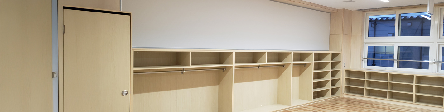 収納棚、カウンター、下駄箱、受付台などを現場寸法に合わせて製作。使い勝手はもちろん、見た目の美しさも追求します。 - 仕上ユニット工事