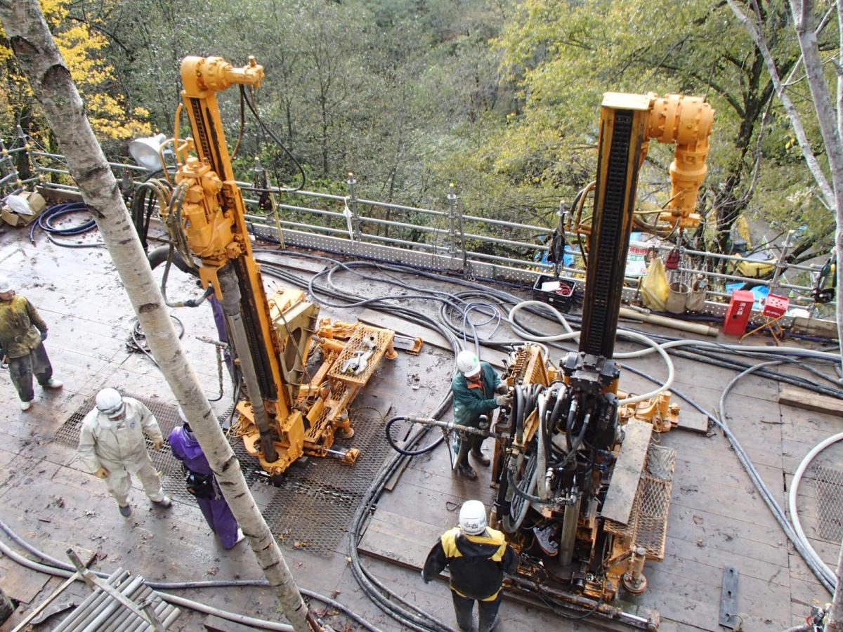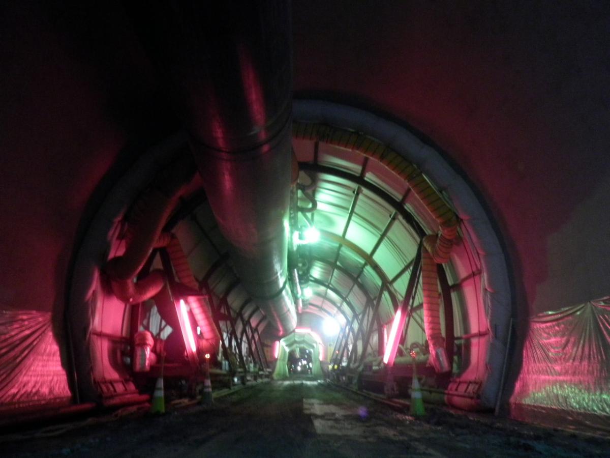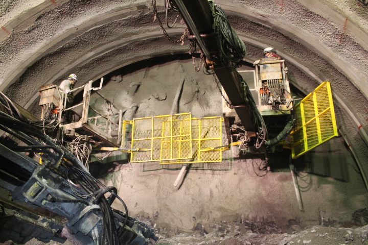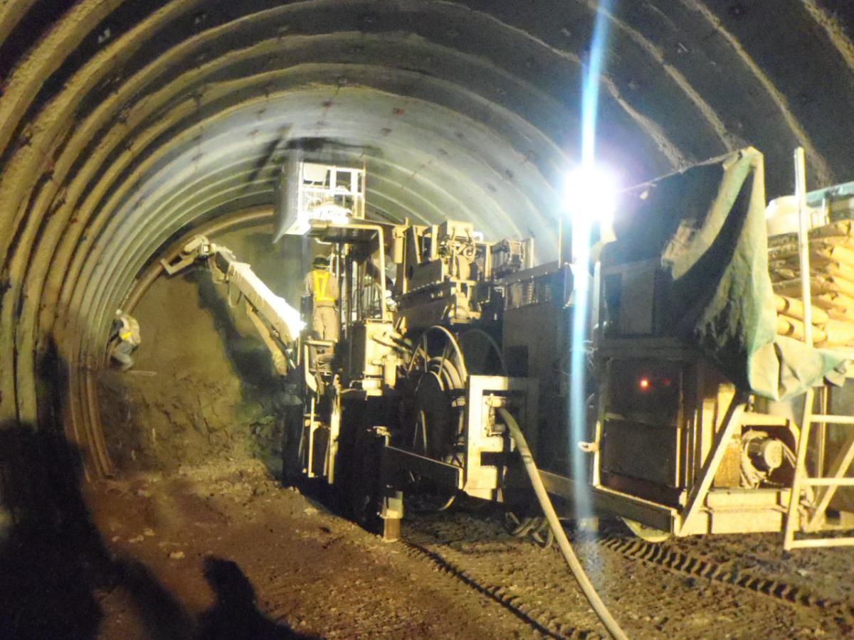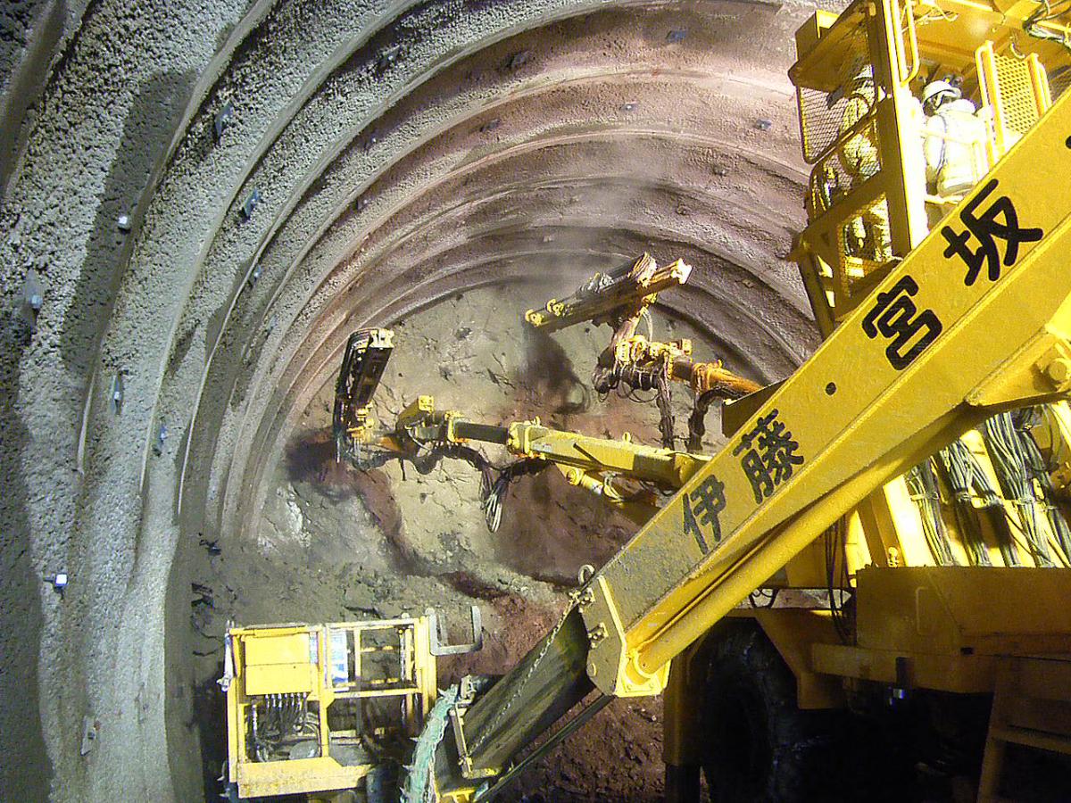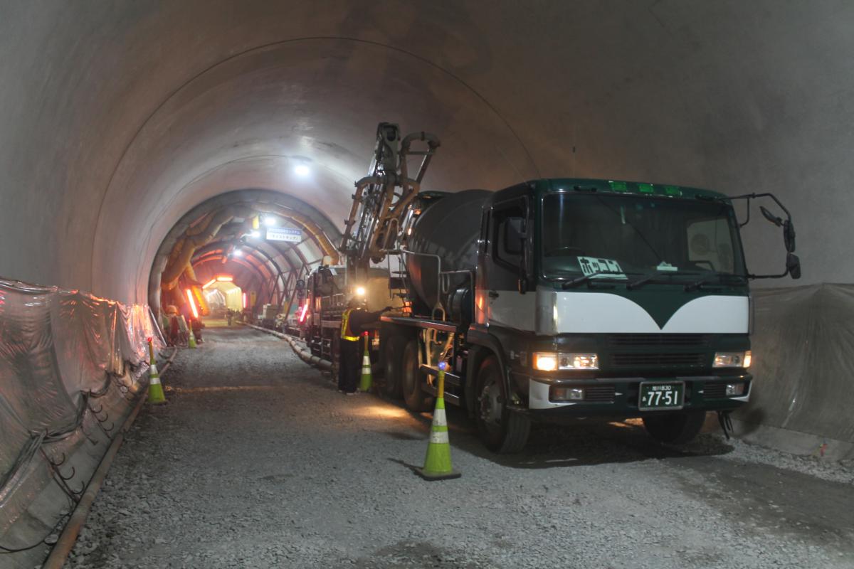 地質は、起点(芦別側)から約1/3が砂岩主体、残りの約2/3は砂岩泥岩互層及び砂岩で構成されていました。地山が脆弱な区間では、発注者と協議しながら補助工法や早期閉合等を実施し、終点側(美唄側)坑口の斜面では、垂直縫地ボルトを施工して地山の安定化を図りました。また、覆工コンクリートの施工では、材料・施工・養生の各段階で新技術の活用や創意工夫により長期耐久性の向上を図りました。