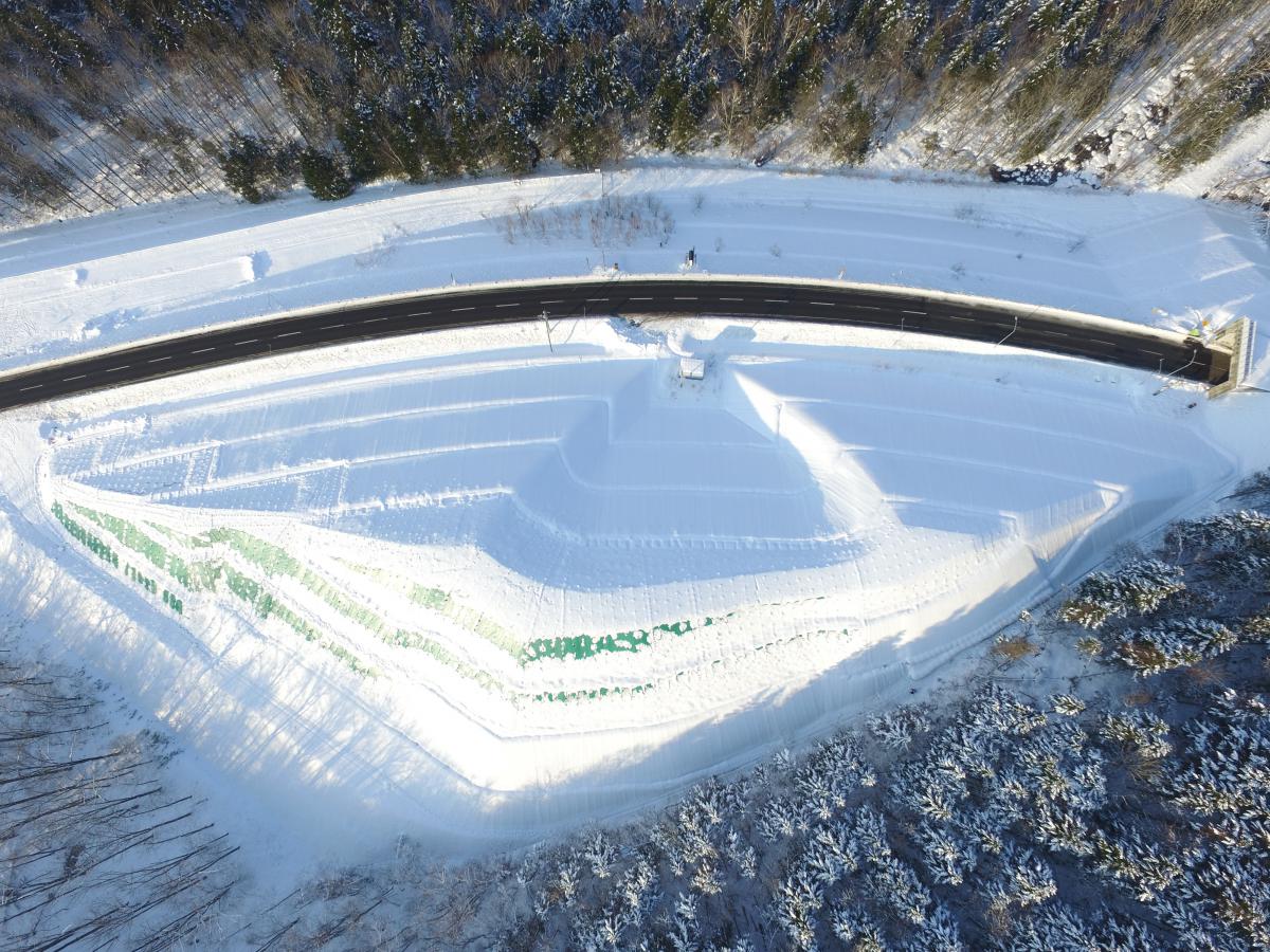 本工事は、その路線内において、美唄市東美唄地区から芦別市の境界地点の山岳地帯(標高:450m、最大土被り:273m)に、延長1,821mのトンネルを新設するものです。
