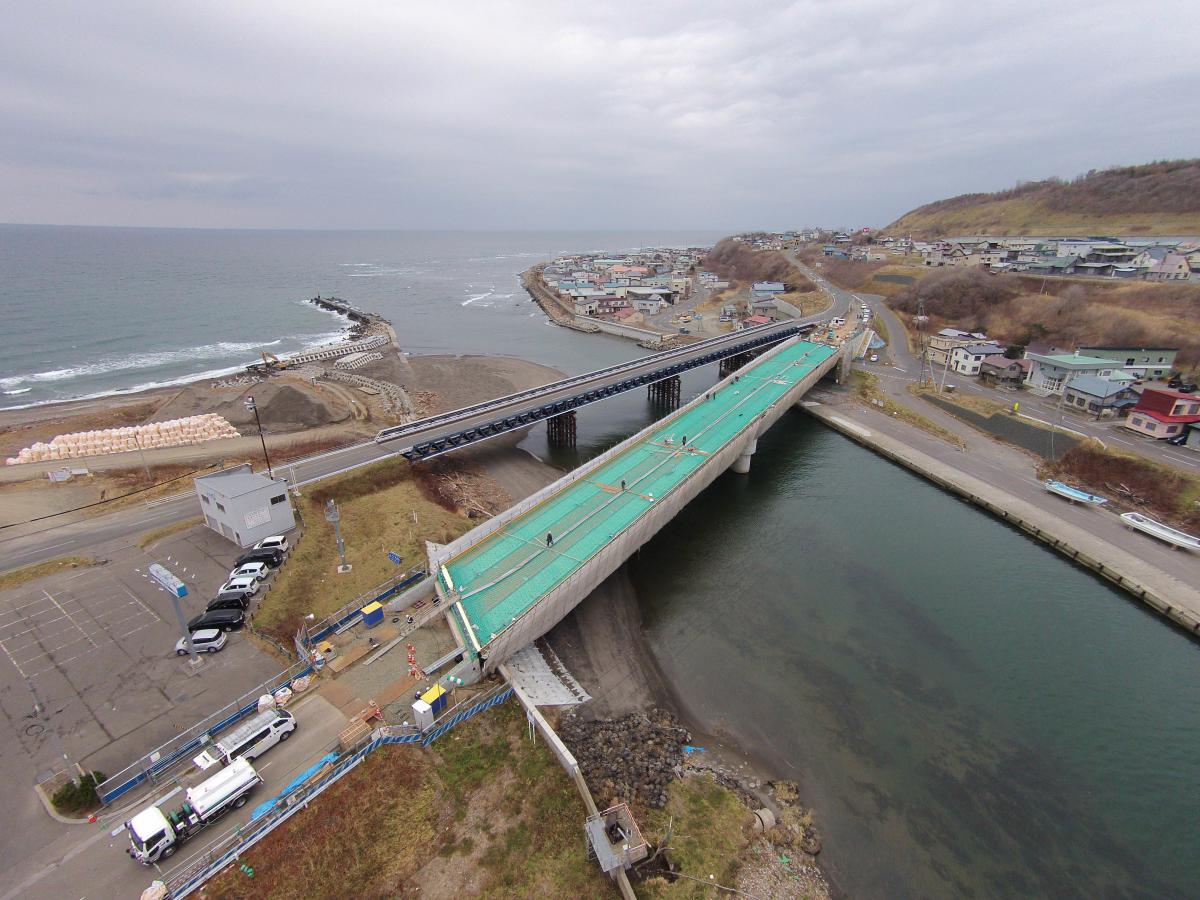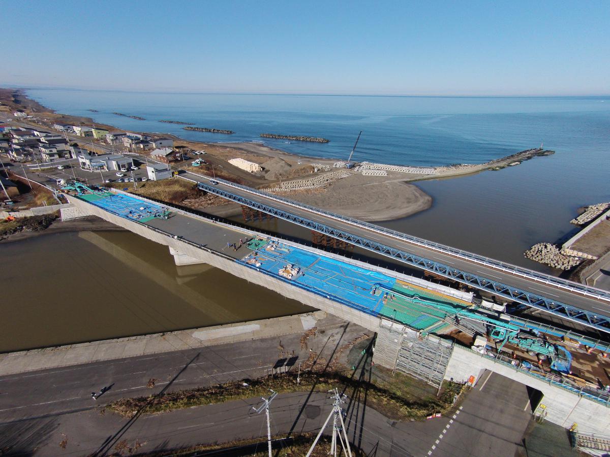 施工実績 ホーム 施工実績 土佐東浜線 常呂橋上部工 土佐東浜線 常呂橋上部工土木橋梁道北2016年竣工本工事は、道道1033号土佐東浜線の内、オホーツク海に注ぐ常呂川を跨ぐ、常呂橋(橋長134m,幅員12m)を送出し架設で構築する上部工事です。 本橋梁工事は、送出し架設の下り勾配の限界値である3%を有し、反力のばらつきが生じやすい斜橋(斜角60度)でもあり、難易度の高い工事でした。そのため、桁逸走防止や横ずれ防止設備を充実させるとともに、送出し架設前に危険作業事前検討会を実施するなど安全対策を強化しました。また、床板・地覆コンクリートの施工では、施工方法や養生方法を工夫しました。 概要竣工2016年2月用途橋梁所在地北海道北見市発注者北海道前へ戻る戻る次へ