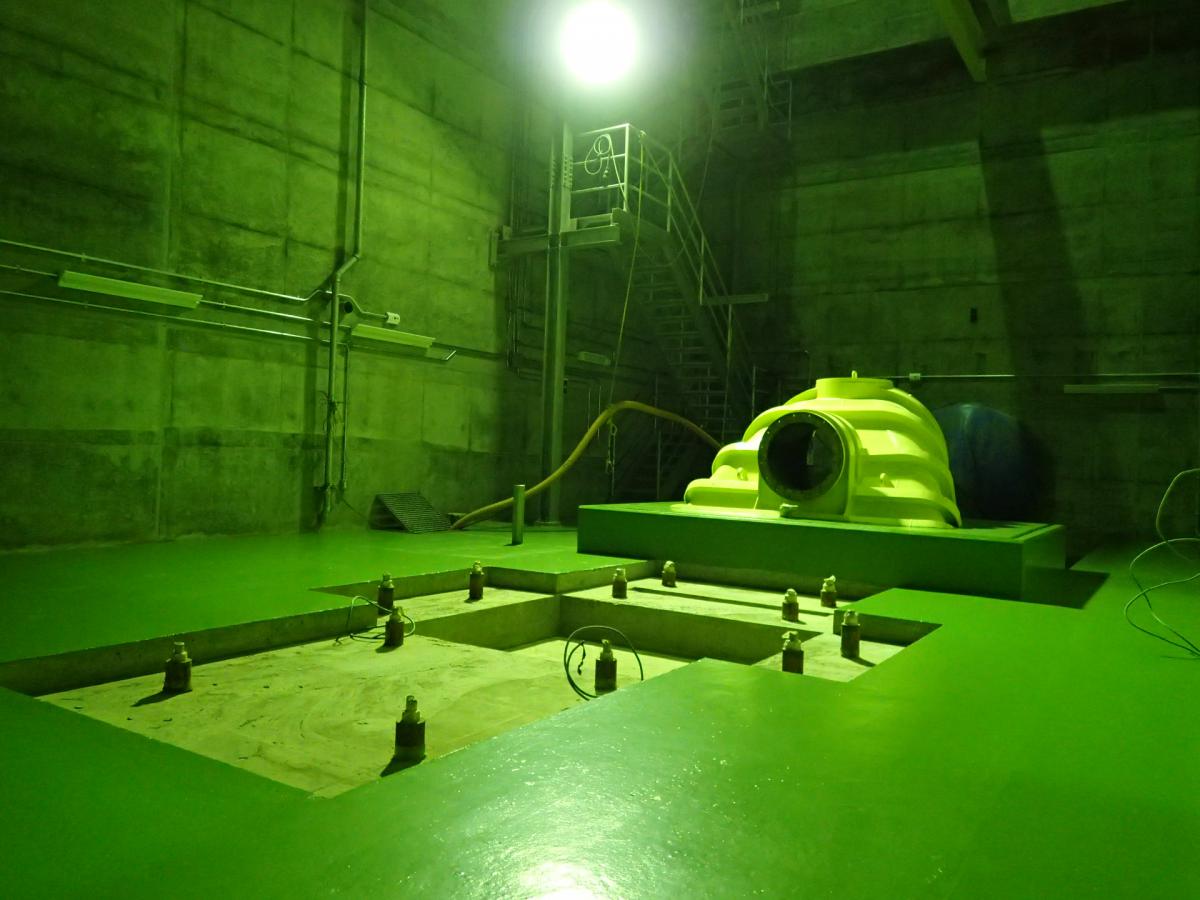 大正14年の築造時から90年ほど経過していることから、沈砂池や水槽の経年劣化した既設コンクリートを取壊して、新たにコンクリートを打ち足すなどの改修を行い、新タービンを設置する発電所本館を新たに築造しました。夕張川からの取水経路は旧水路と同じですが、今回の改修では、新タービンをより深い位置に設置することで発電効率を高めています。