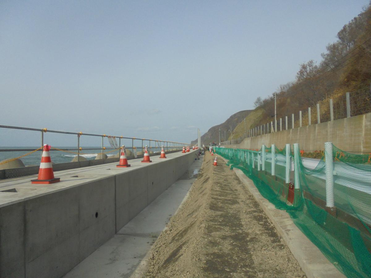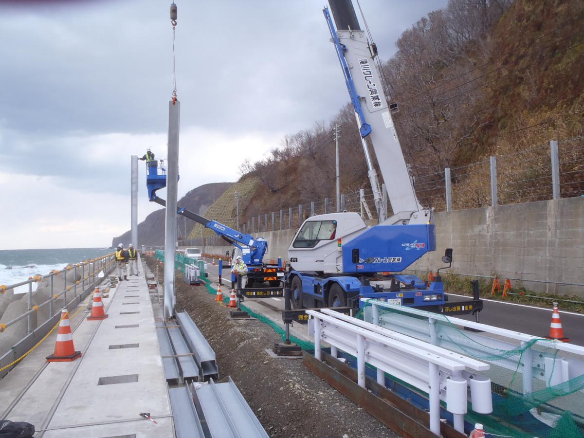 施工実績 ホーム 施工実績 一般国道231号 石狩市 幌防波柵設置工事 一般国道231号 石狩市 幌防波柵設置工事土木道路道央2016年竣工石狩市浜益区で発生する越波を防止するため、国道231号オロロンライン沿いに高さ6.7mの透光性防波柵を設置する工事です。 海岸沿いに構築される鉄筋コンクリート構造物の耐久性を確保するため、温度ひび割れ解析を実施して型枠・打設・養生の各段階でひび割れ対策を実施しました。 概要竣工2016年12月用途道路所在地北海道石狩市発注者北海道開発局前へ戻る戻る次へ