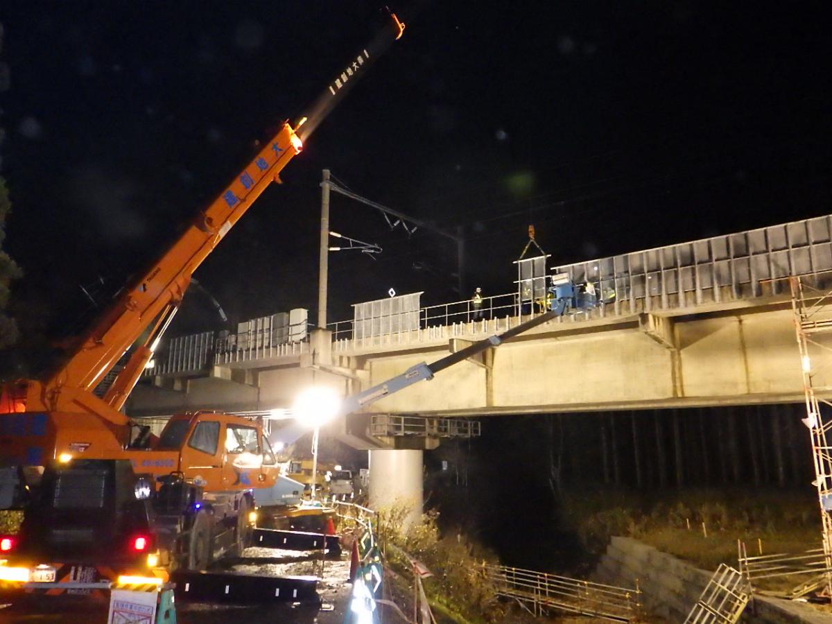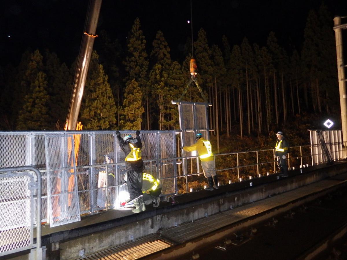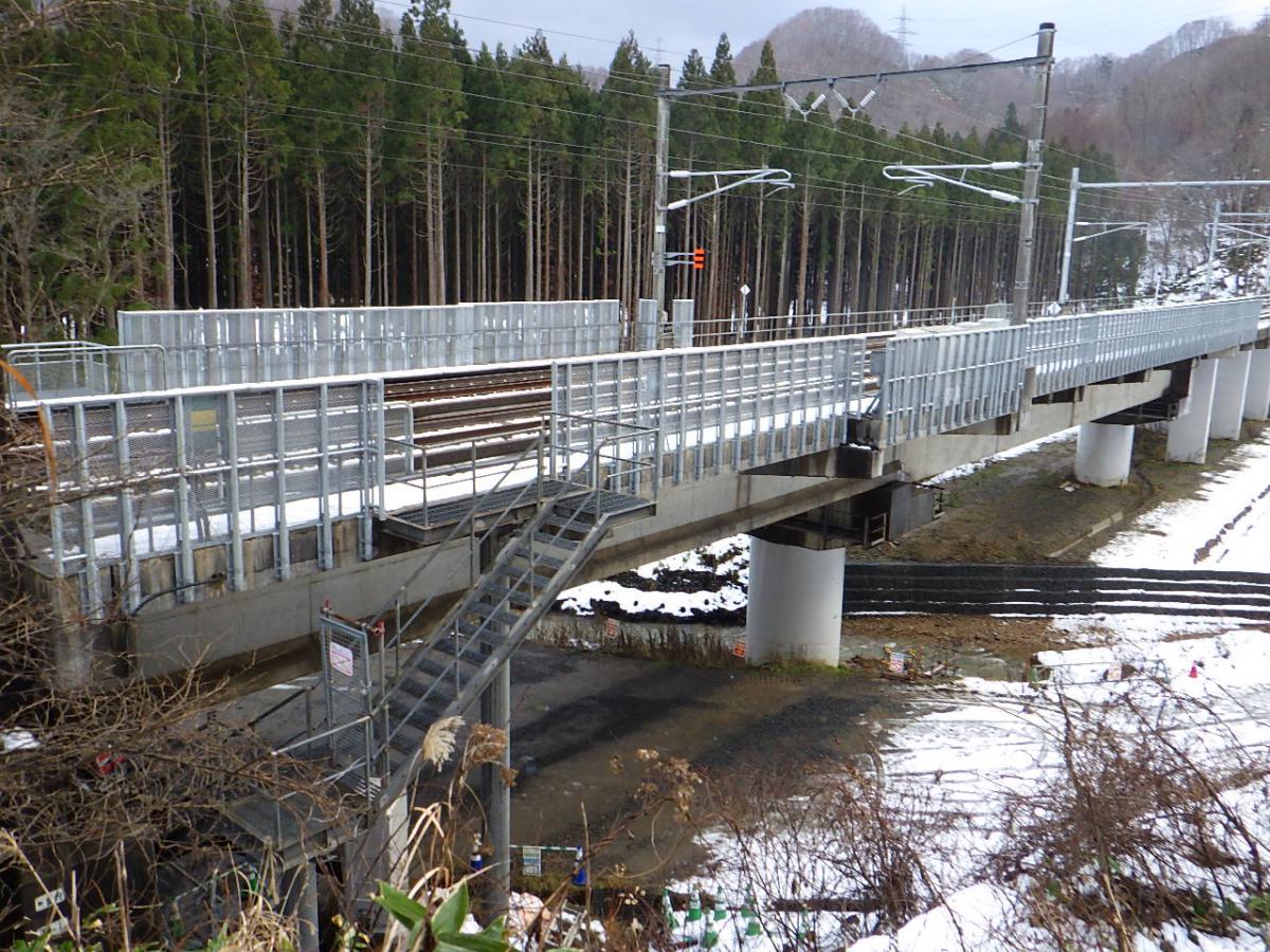 施工実績 ホーム 施工実績 北海道新幹線重内工区6 落氷雪防護工 北海道新幹線重内工区6 落氷雪防護工土木鉄道道南2018年竣工知内町重内、森越の約2,700mの工区延長の中で、列車進来に伴う雪や氷の線路外への飛来を防止するための落氷雪防護柵の設置をメインに、高架橋開床部の閉鎖工の設置、護岸の復旧工事を行いました。 概要竣工2018年3月用途鉄道所在地北海道知内町発注者北海道旅客鉄道株式会社前へ戻る戻る次へ
