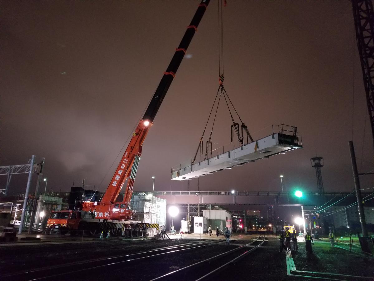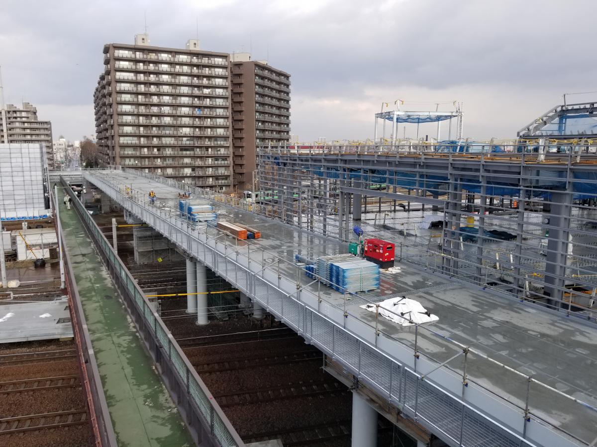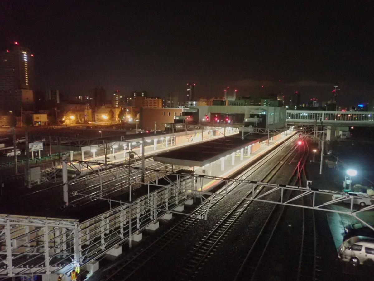 施工実績 ホーム 施工実績 JR苗穂駅(土木) JR苗穂駅(土木)土木鉄道札幌2018年竣工苗穂駅周辺地区まちづくり事業の一つであり、苗穂駅を札幌側へ移転橋上化、南北を繋ぐ自由通路の新設を行う工事です。自由通路の橋脚新設、桁架設、新苗穂駅の乗降場新設を土木工事で施工しました。函館本線と千歳線が通過する駅であり、JR苗穂工場と合わせて、線路が13線もある場所での工事であり、工事のほとんどを夜間の線路閉鎖工事の中で施工を行いました。約2年間の長期間工事でしたが、2018年(平成30年)11月17日に無事開業を迎えることができました。 概要竣工2018年12月用途鉄道所在地札幌市中央区発注者北海道旅客鉄道株式会社前へ戻る戻る次へ