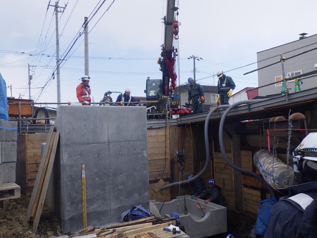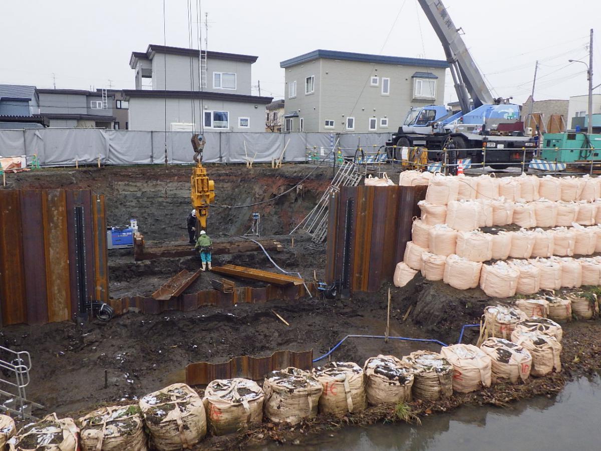 施工実績 ホーム 施工実績 利根別川広域河川改修工事(南利根別川工区)南町地区 利根別川広域河川改修工事(南利根別川工区)南町地区土木河川・港湾道央2019年竣工〇工事延長342m ・掘削工 1,100m3 ・盛土工 2,000m3 ・護岸工(積ブロック) 1,558m2 ・固結工(スラリー攪拌)623本MITS Φ1600 4.1m~8.9m ・固結工(高圧噴射攪拌)39本φ2000二重管 3.9m~4.6m ・樋門工 (φ1000×6.0m)1基 ・排水工 2基 概要竣工2019年3月用途河川・港湾所在地北海道岩見沢市発注者北海道前へ戻る戻る次へ