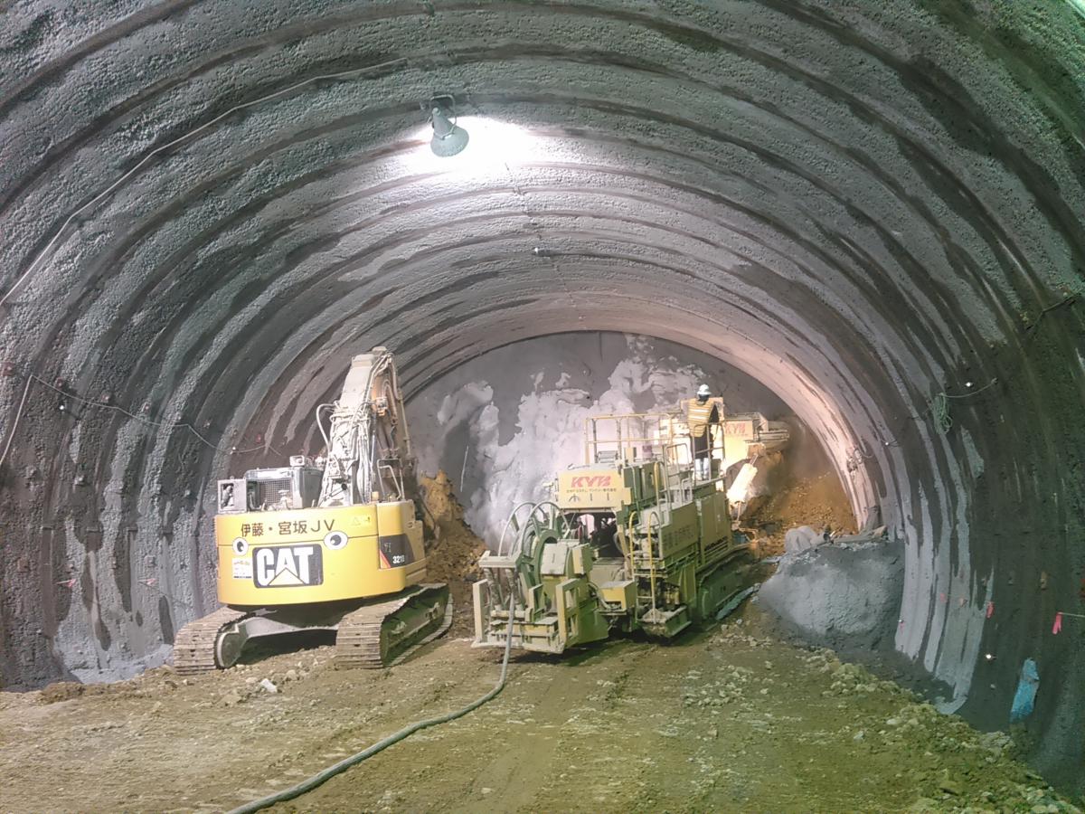本トンネルは、ゴルフ場や携帯基地局の鉄塔の直下を20m程度の低土被り型で掘削することから、地表面の沈下リスクを低減させる施工方法を採用して無事貫通しております。また、施工計画や成果品へのCIM導入、3DLSによる覆工コンクリートの出来形計測など、作業所では各種ICTの活用にも積極的に取り組みました。