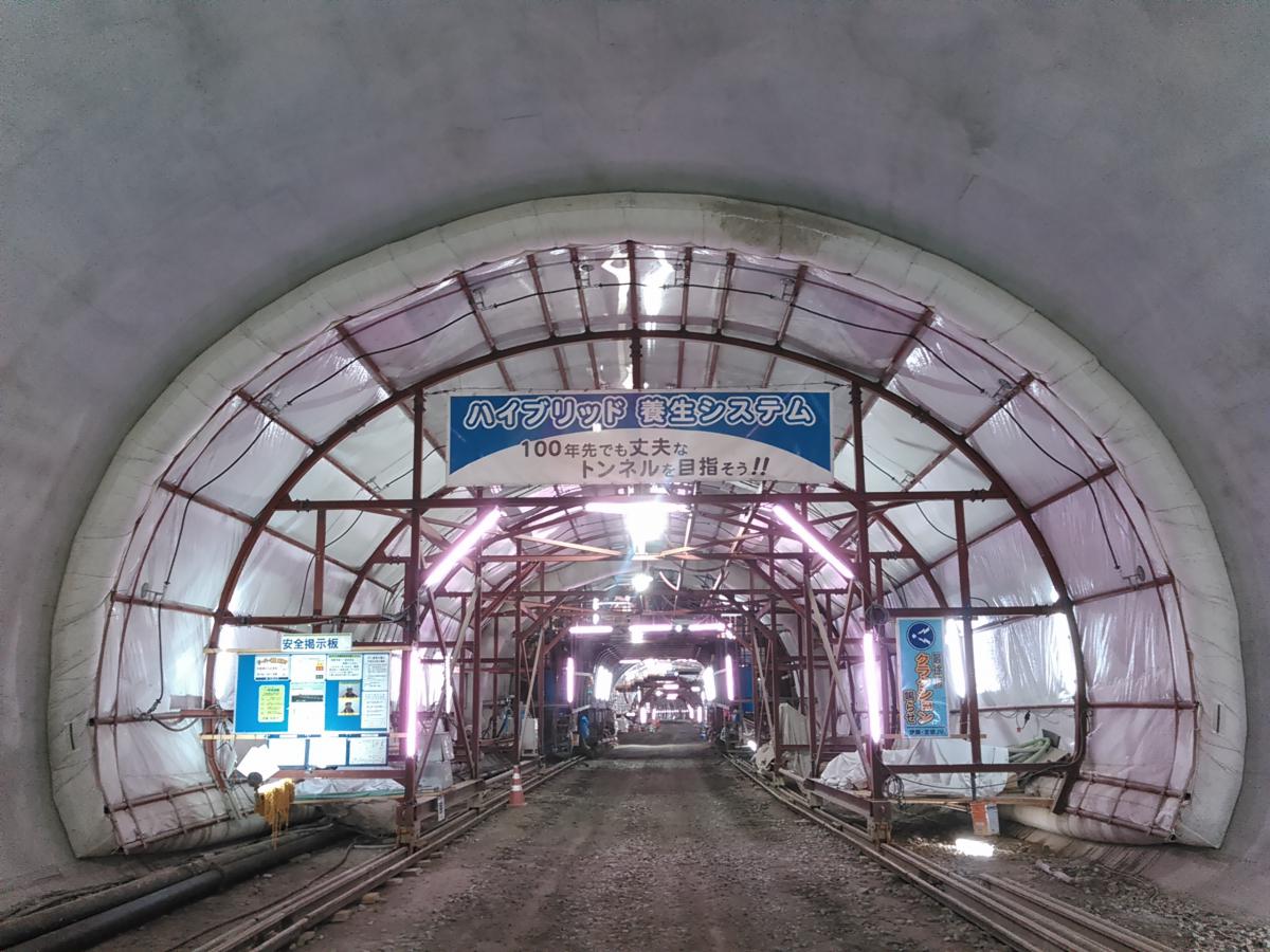 なお、本工事では覆工コンクリートの養生として「ハイブリッド養生システム」の開発に取り組み、その実証効果が認められてHK-190001としてNETISに登録されました。