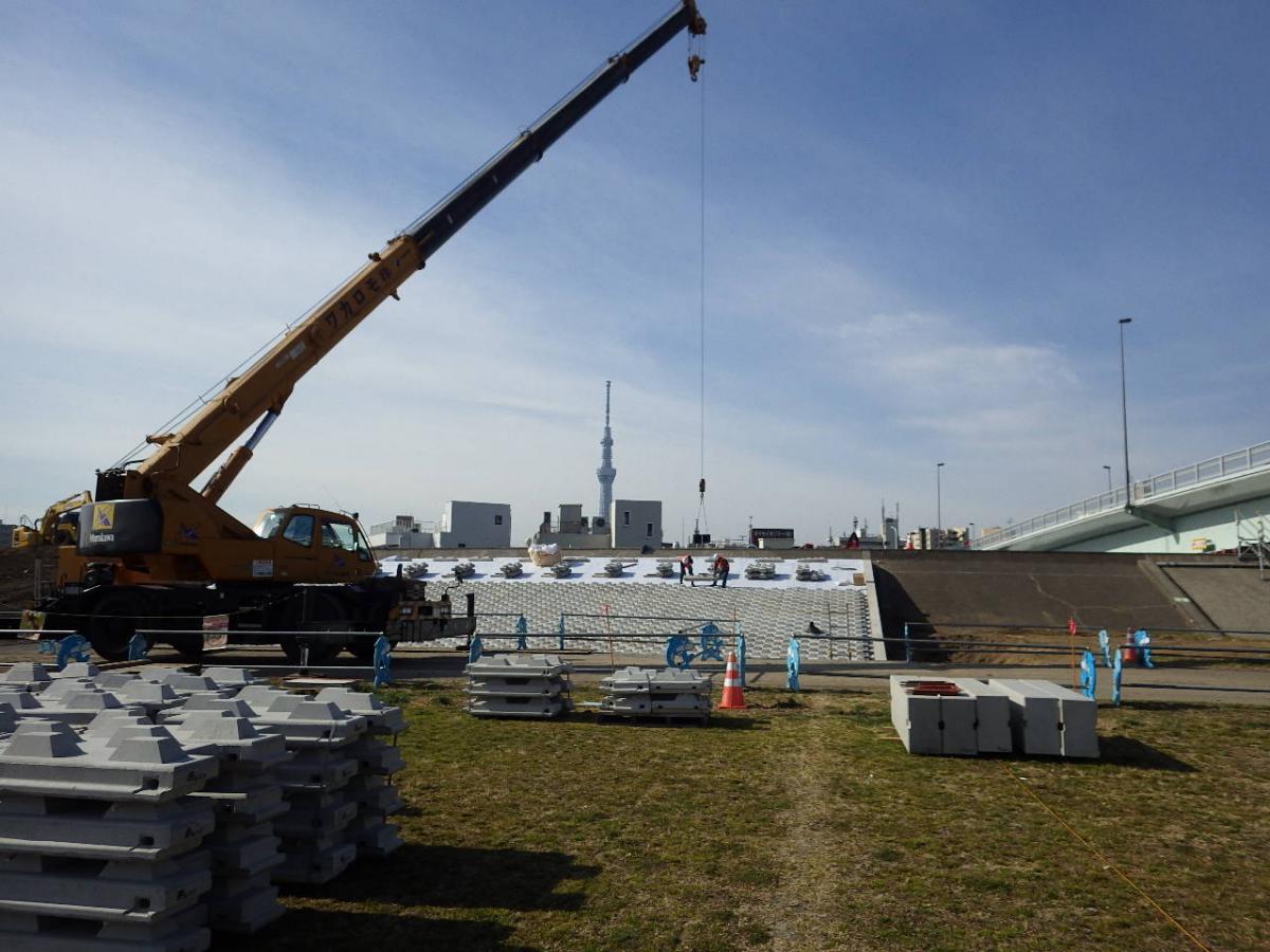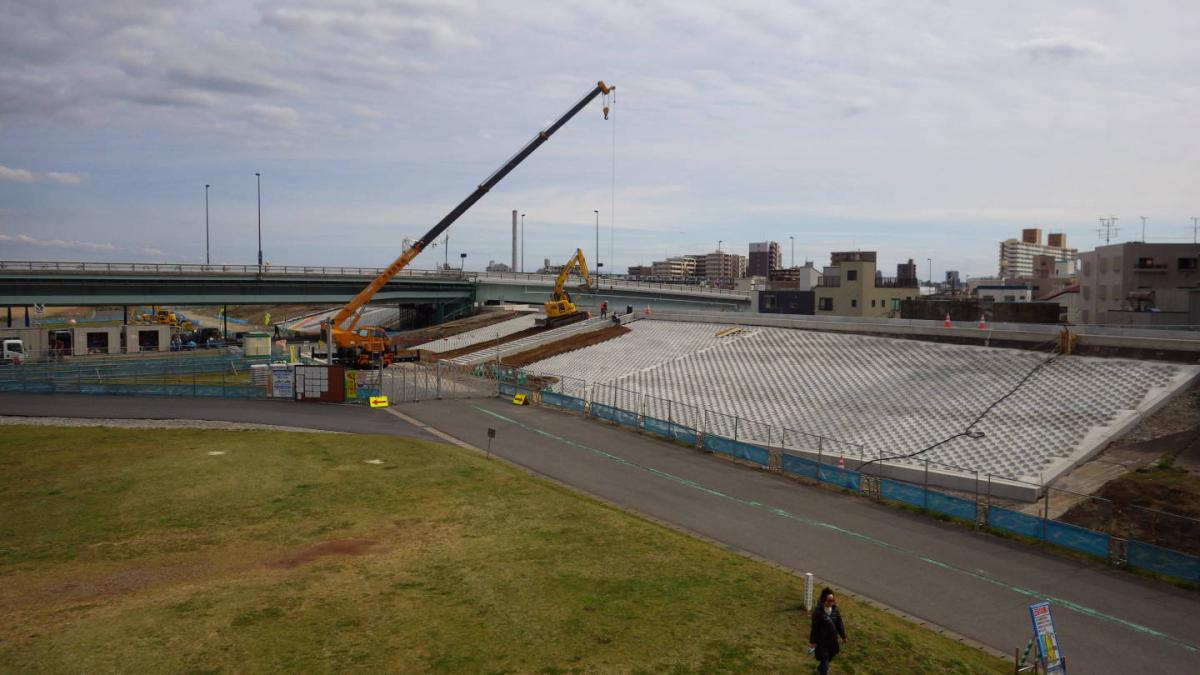 施工実績 ホーム 施工実績 H30荒川右岸八広六丁目高潮堤防整備工事 H30荒川右岸八広六丁目高潮堤防整備工事土木河川・港湾関東2019年竣工荒川下流部の沿川地域の人口密度は全国の一級河川水系の中で最も高く、万が一堤防が決壊した場合には広範囲に甚大な被害が及んでしまい、首都機能を麻痺させるおそれがあります。 当工事はこれらを解消することを目的に、所定の堤防断面を満たしていない既存堤防を嵩上げ盛土して、3面にはコンクリートブロック張を施し、堤防を大きく太くする高潮及び洪水対策の工事です。 概要竣工2019年6月用途河川・港湾所在地東京都墨田区発注者関東地方整備局地図地図を戻す前へ戻る戻る次へ
