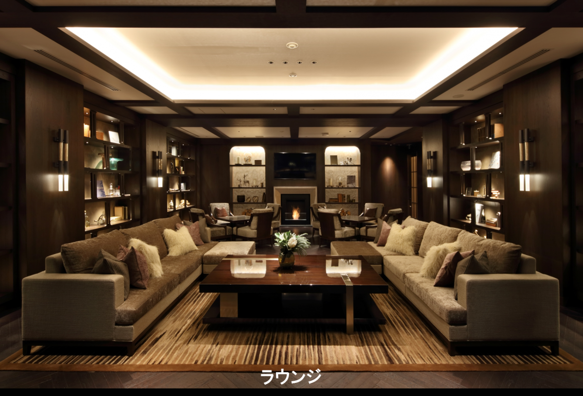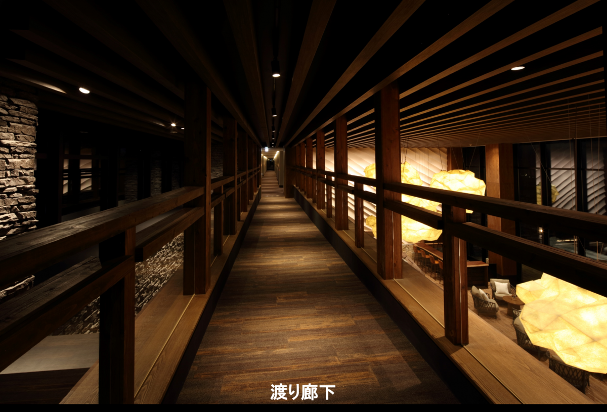 建物は中央のロビー棟の左右にwing A棟・B棟が配置され、地下1階、地上7階建てで104世帯のコンドミニアムです。1LDK~最上階の4LDK露天風呂付きまで、14タイプの客室となっています。最上階からはシェラトンホテルを見渡すことができ、季節折々の景色が広がります。パブリックエリアは吹き抜けロビーの他、レストラン、ラウンジ、温泉、ジムが用意されており、各所に日本の山脈をイメージしたデザインとされています。